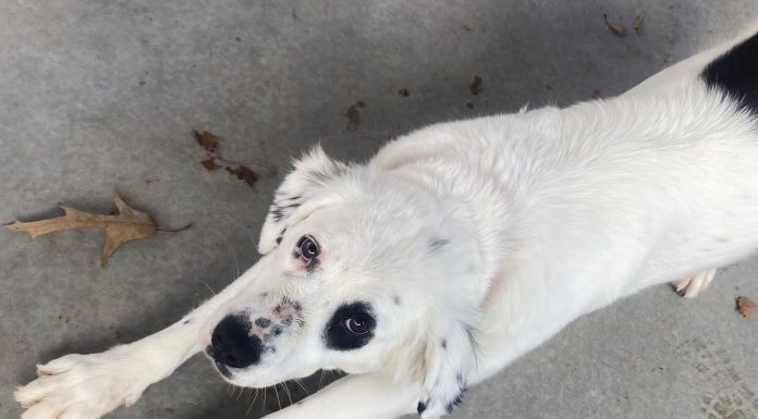 Meet Gnomie! A colorful 2-year-old, white and black blend of Australian Shepard & Blue Heeler who is waiting for you...
