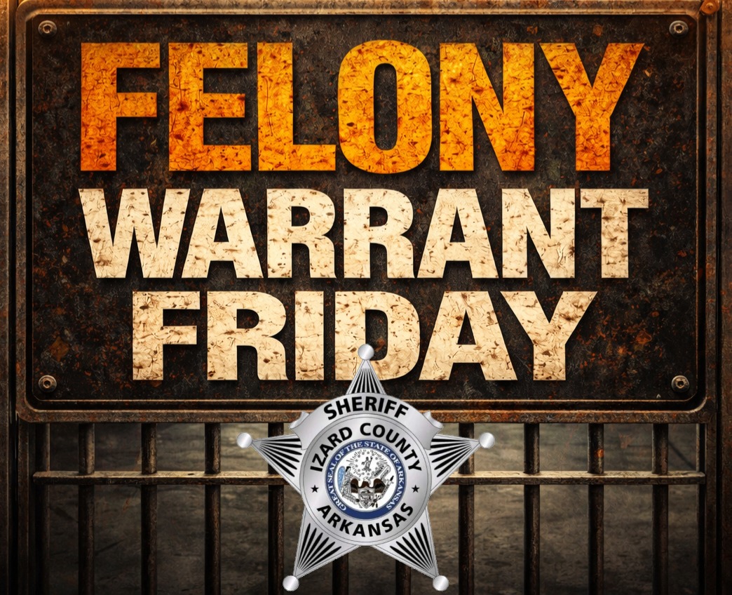 Izard County, AR. – The Izard County Sheriff’s Office in Arkansas has posted their latest in their “Felony Warrant Friday” lists, bringing attention to outstanding warrants that need cleared. The post will be shared below.