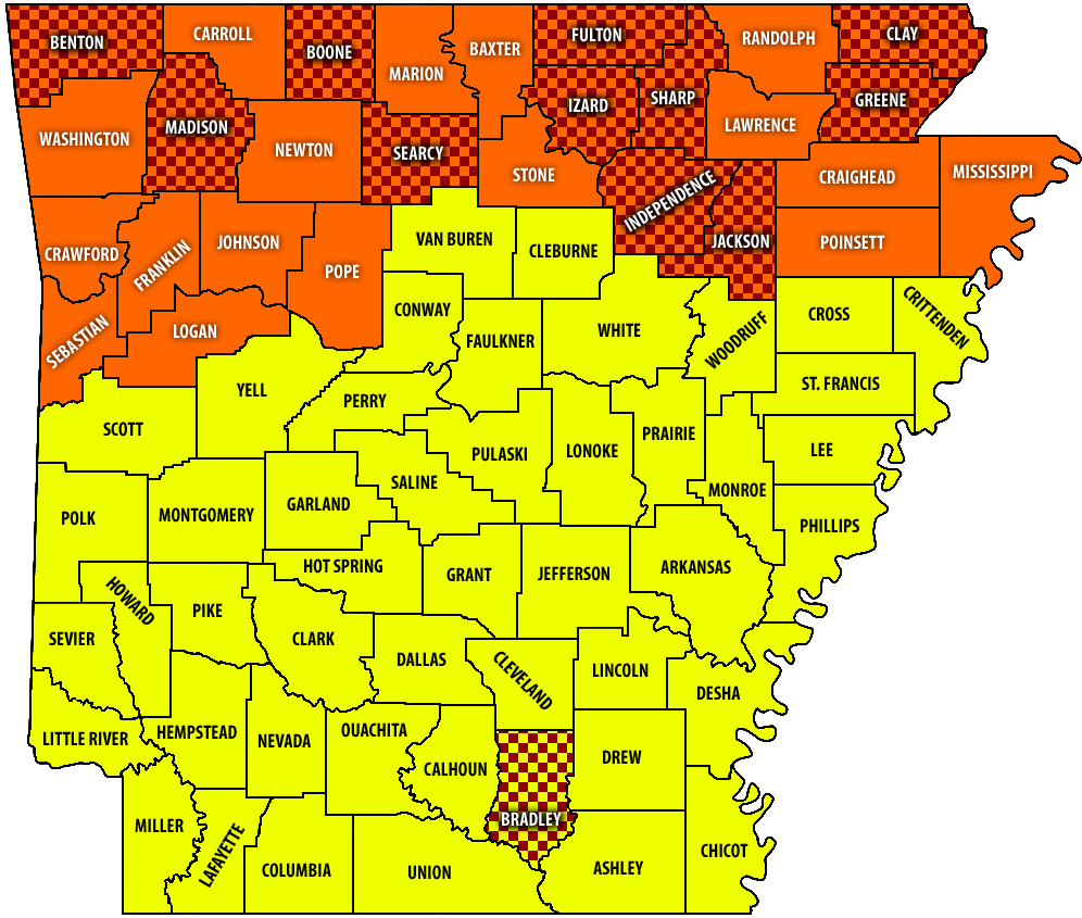 Currently, according to the Arkansas.gov burn ban map, counties include Boone, Searcy, Fulton, Izard, and Sharp Counties. While Baxter County does not have an active burn ban, one is currently up for the town of Salesville, and the entire Arkansas listening area is under an “extreme” risk for fire.