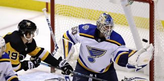 Jarry stops 28 shots, Penguins beat Blues 3-0