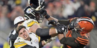Garrett loses cool, hits Steelers QB with helmet in brawl