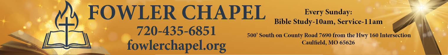 Welcome to Fowler Chapel. We are dedicated to building the Kingdom of Heaven, one person at a time, by serving Caulfield and our surrounding communities with a heritage that goes back generations. We invite you to join us this Sunday at 10 a.m., for a bible study, to learn who God is, who you are, and how all things fit together.