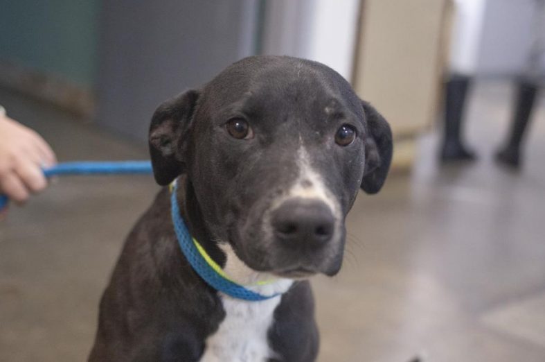 Meet Athena. a sweet and mellow Pit Bull Terrier and Labrador Retriever mix who is available for adoption through The Humane Society of North Central Arkansas.