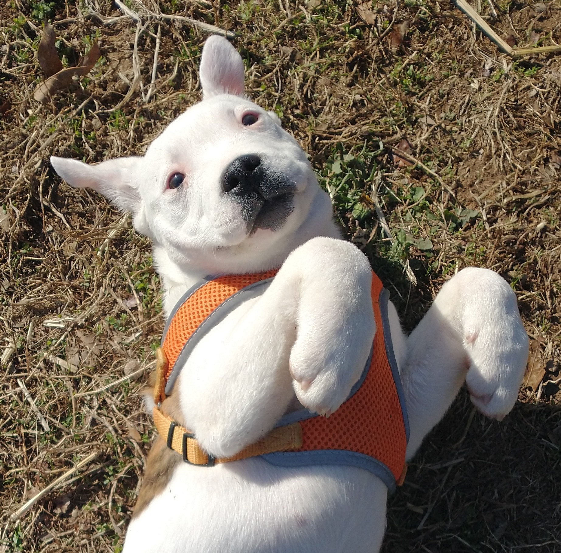 These sweet girls are pit mixes with amazing personalities. They love rolling in the grass, playing, and soaking up every bit of attention they can get. Whether it’s a belly rub or a romp in the yard, they’re always up for fun!