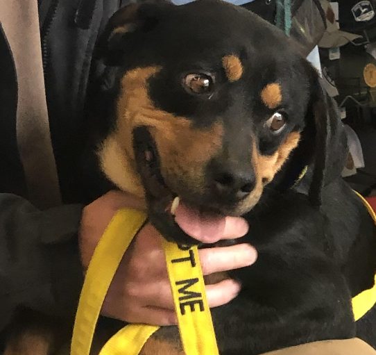 Say hello to Pilot! While this proud pup may look like a Rottweiler, he is a year old and still weighs 35-40 pounds. Additionally, he retains both the same look and sense of playfulness. He gets excited and stands on his hind legs when he sees his favorite people.