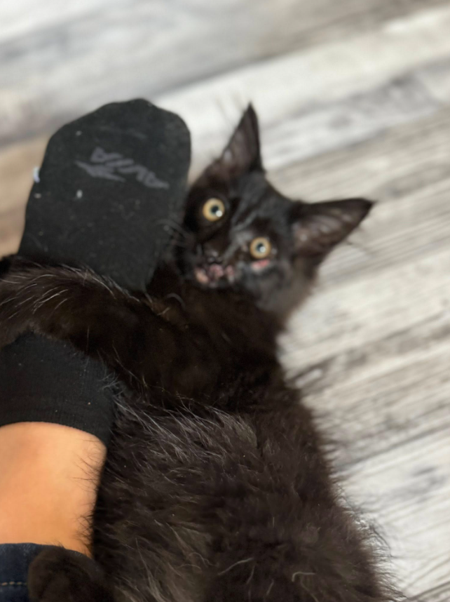 Tuck is an estimated 12-week-old, black, main-coon mix who is up for adoption from Ozarks Pet Rescue. He fell out of a truck and onto the freeway after departing Williams Veterinary Care in Mountain Grove, Missouri.