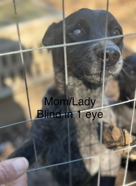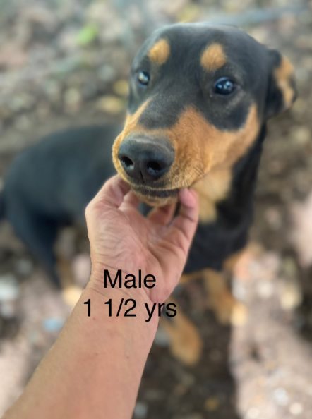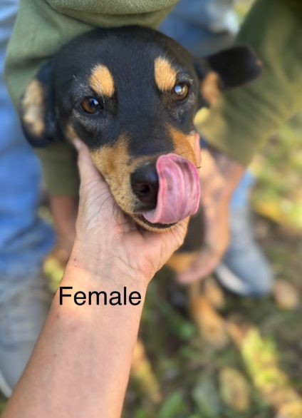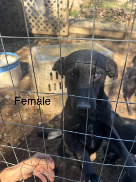 5 1 1/2 year old Puppies were caught within the last week by Ozarks Pet Rescue. 2 males and 3 females. Mom is a blue heeler and the Dad is unknown, possibly a Rotweiller or Lab. Only charachtersitic dogs appear to have in common with the mother is her size. The mother was found while pregnant.