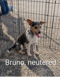 Bruno – 9 months old Terrier mix, male, small breed and the cutest ears! Chill, good boy. Housebroken and neutered.