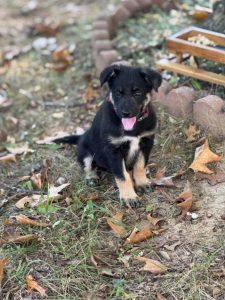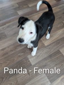 Panda – 3 months old, female, Hound/Collie mix. Intelligent and independent. Will make a fun companion! She’ll likely remain in the as medium sized pup.