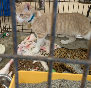 Knight (our Featured pet From Friday) is a 4-month-old short hair. In the previous listing we had mentioned he was curious. This is an understatement. During our appearance at the show, he seemed to want out of his cage desperately. Hence, this is why his cage was quite a mess. He was also quite adamant in saying, “Please take me home!”
