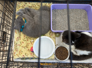 Ike (3 month old, black and white shorthair) seemed to enjoy watching people come in and out of the Petco store as he was in-sight of the doors.