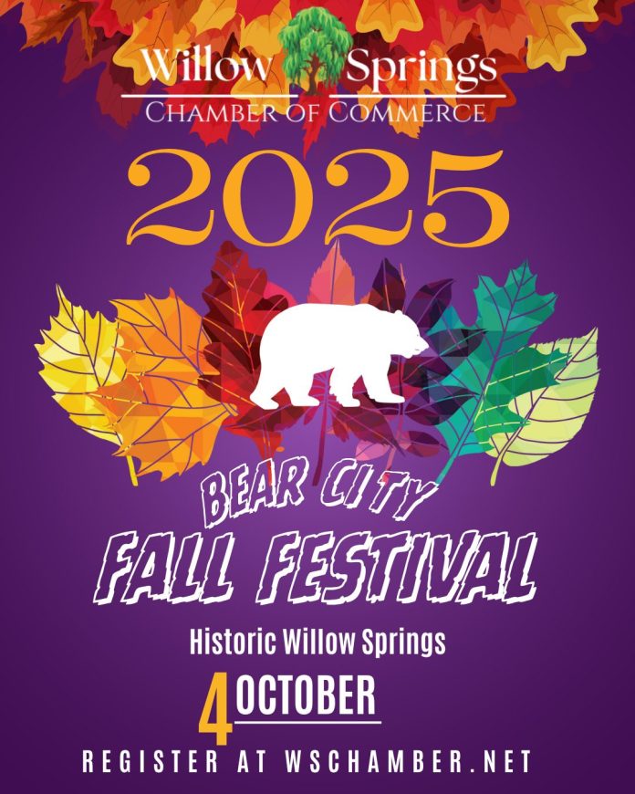The Willow Springs Chamber of Commerce is excited to announce that the much-loved Bear City Fall Festival is returning for it’s 51st year! This year’s event will be held on Saturday October 4th from 9 – 3pm in Downtown Willow Springs!