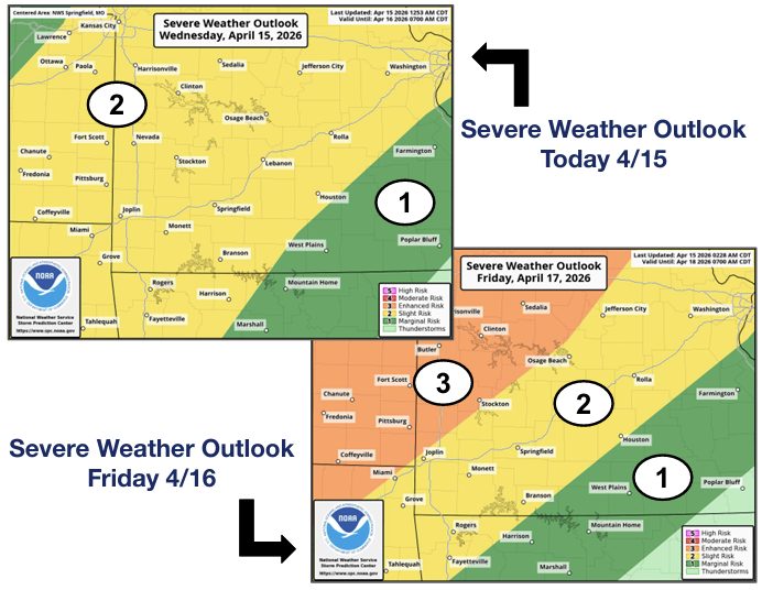 Local News “All Hazards are Possible” says NWS on Tonight’s Storms By Daniel Williams - April 15, 2026 FacebookTwitterPinterestWhatsApp 04.15.2026 5.43 AM CDT - DssPacket https://www.ozarkradionews.com/ozarkradionews/wp-content/uploads/2026/04/NWS-Gene-Hatch.wav ShareTweet Advertisement