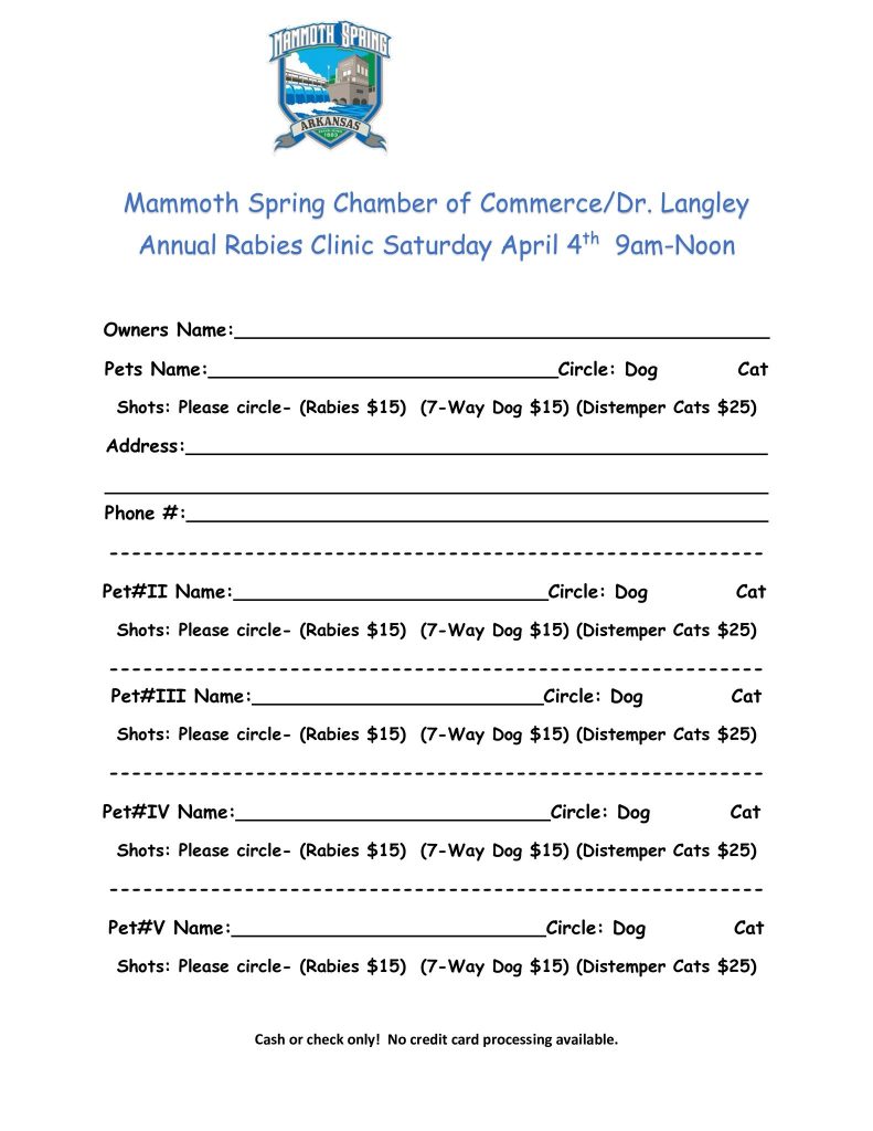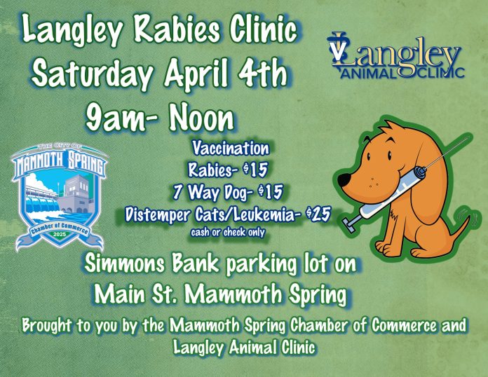 Mammoth Spring, AR. – The annual rabies clinic in Mammoth Spring will be coming up at the beginning of next month.