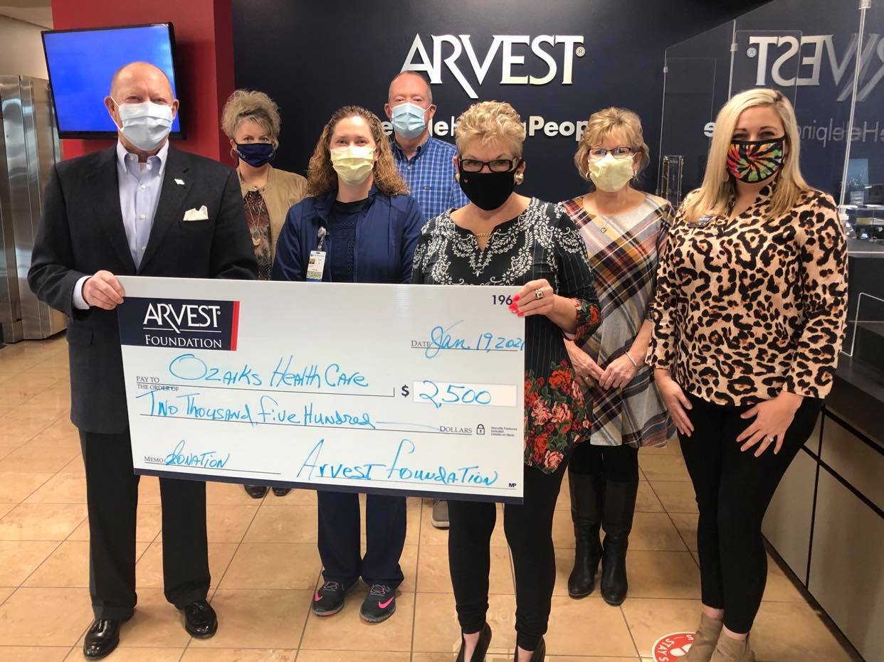 WEST PLAINS, MO – A $2,500 donation has been made by Arvest Bank to Ozarks Healthcare’s Foundation to support “Nurturing Hope: A Community Cancer Project.” The project includes the ongoing expansion of Ozarks Healthcare’s Cancer Treatment Center’s chemotherapy suite, the construction of a healing garden, and the purchase of new equipment.