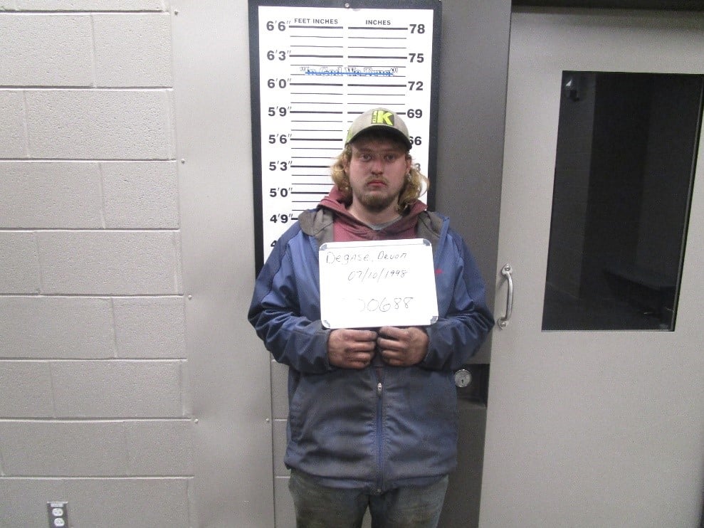 Corporal Wallace and Deputy Coffee responded to the scene where they made contact with the driver, Devon Degase, 22, of Ava. While speaking with Devon, Corporal Wallace observed that he appeared to be under the influence of an unknown controlled substance.