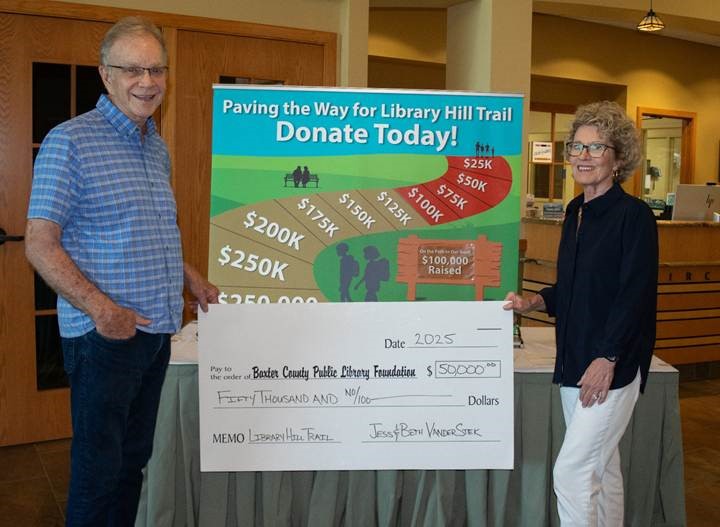Mountain Home, AR. – The Baxter County Library Foundation has received a $50,000 donation from locals to support the Library Hill Trail, which is being made to enhance the outdoor space of the Library.