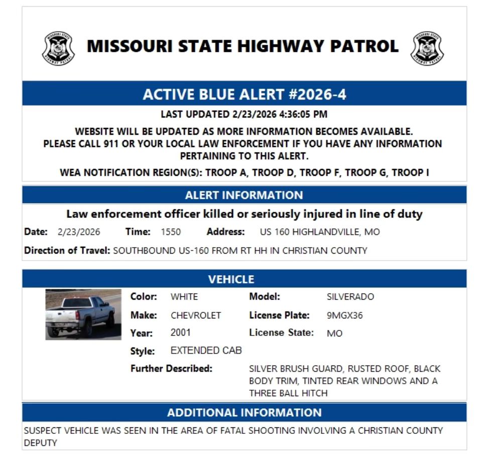 If you see the vehicle please contact local law enforcement and the Missouri State Highway Patrol.