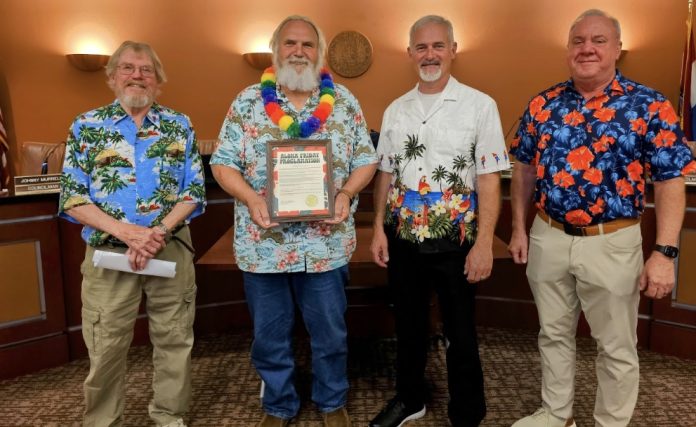 At the most recent City Council meeting, Mayor Michael Topliff signed a proclamation recognizing the return of Aloha Fridays, a cheerful community tradition that encourages residents to wear their favorite Hawaiian shirts every Friday from Memorial Day through Labor Day.