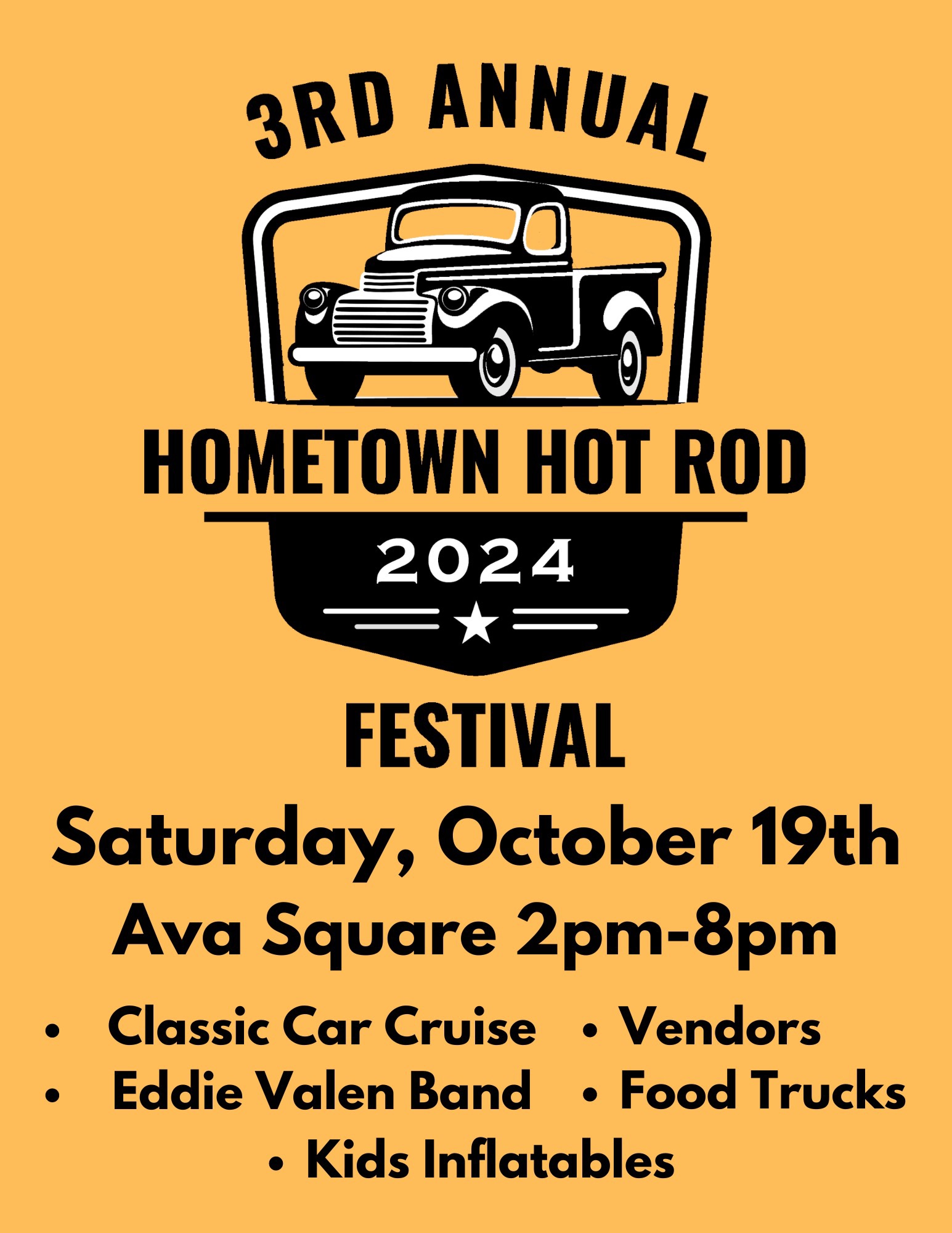 Ava, MO – The Annual Hometown Hotrod Festival is returning to Ava in Douglas County this Saturday for its third year.