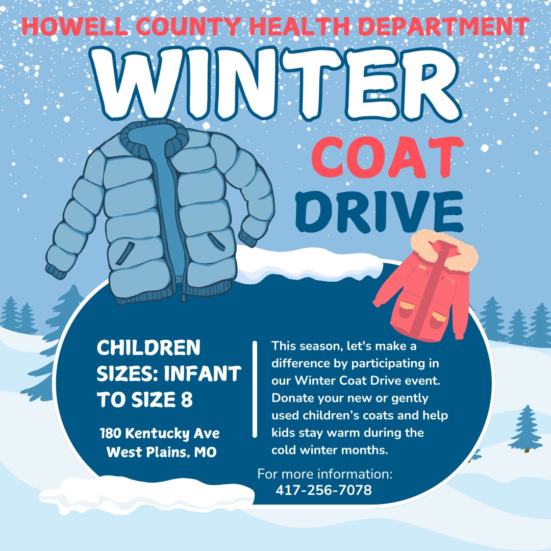 The Howell County Health Department is holding a coat drive.  They are seeking donations of coats sized infant through size 8.