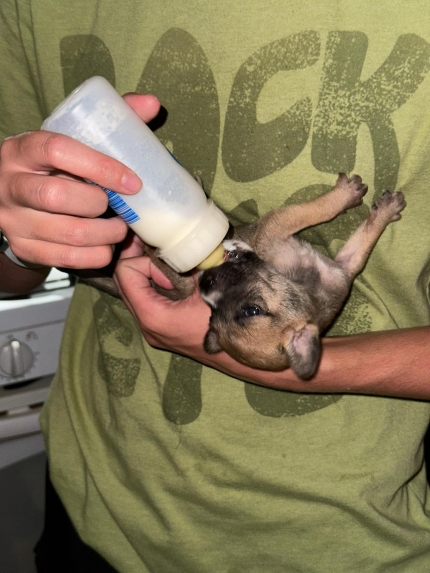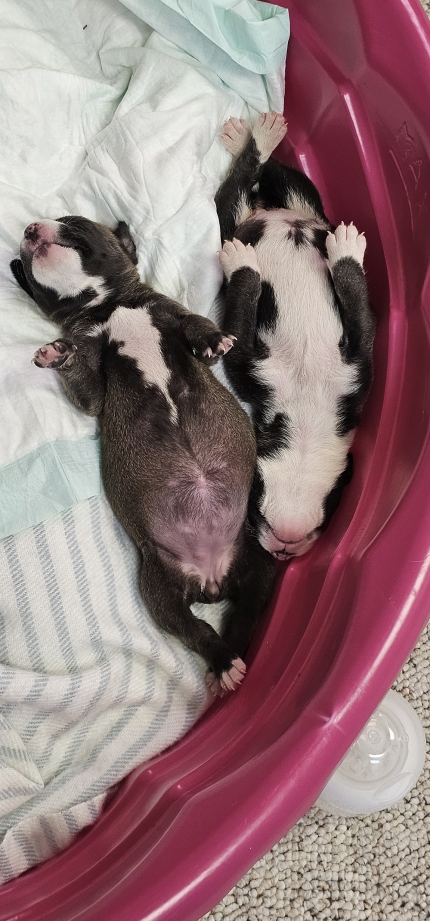 Peggy and Riley are continuing to take care of the remaining puppies, feeding them almost every 2 to 4 hours. The last four puppies were given preliminary names: Thumper, Thumper 2.0, Bubba, and Smokey. Peggy and Riley have stated that they may adopt Thumper 2.0. Then they also found a home for one of the remaining four, whose owner will pick it up after it is off the bottle.
