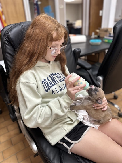 City Hall workers made a trip to the vet to get some advice on what to do with the surviving puppies. It was here that Gainseville resident Peggy Williams and her daughter Riley heard about the puppies. These two community members decided to foster the puppies until individuals would come forward and adopt them. The puppies are a pitbull mix breed.