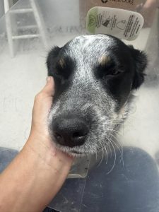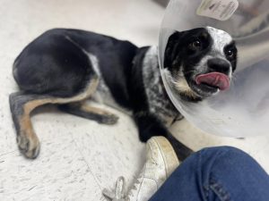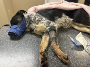 Shortly after the first public post about the Blue Heeler, she was struck by a car. Her jaw was broken, and her leg was dislocated. Thankfully, she was rushed to Priority Pet Care in West Plains, where Dr. Wes Gunter and his team immediately began emergency care.
