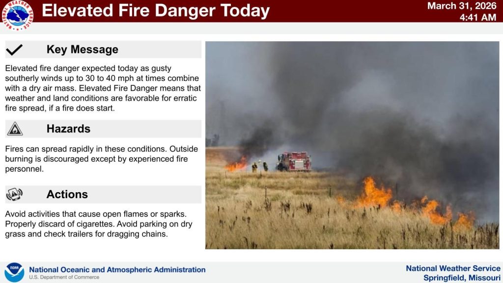 The National Weather Service in Springfield is warning residents that enhanced fire risks will continue today as dry conditions and high winds continue to be prominent in the Ozarks. However rain and storms will be working their way in as we get further into the week, bringing a much needed change.