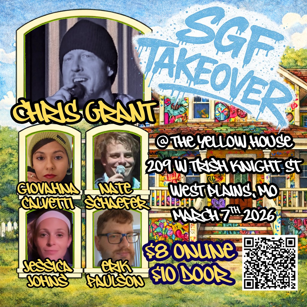 Up next is a comedy show at the Yellow House, 209 West Trish Knight Street. This show will feature Erik Paulson, Giovahna Calvetti, Jessica Johns, Nate Schaefer, and Chris Grant. This will cost $12 at the door, or $10 in advance, and will happen from 7 to 9pm.