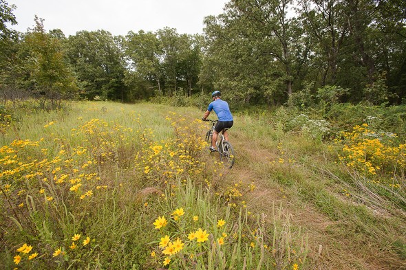Find MDC multi-use bicycle trails and allowed service roads online through the MDC webpage — Find Places to Go — at mdc.mo.gov/discover-nature/places. Bike trails can be searched for by using the Advanced Search feature. Service roads can be identified by searching for a conservation area and then checking the online map for the area to see if service roads exist that allow bicycles.