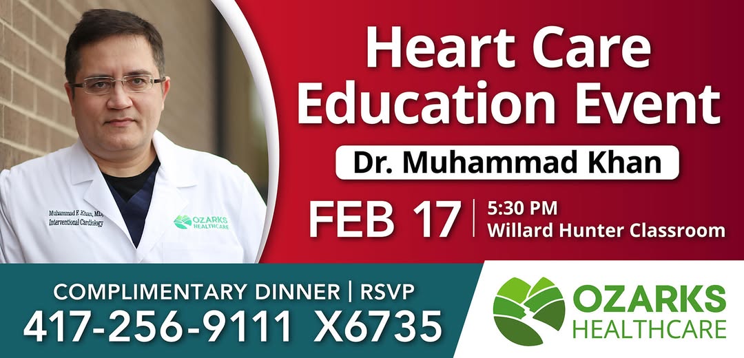 The first session will be held Tuesday, February 17, from 5:30 to 6:30 p.m. in the Willard Hunter Classroom at 1211 Porter Wagoner Boulevard in West Plains. Dr. Muhammad Khan, a board‑certified interventional cardiologist, will lead the program, offering guidance on heart care, prevention, and reducing major risk factors such as high blood pressure and obesity—issues identified as significant needs in the organization’s Community Health Needs Assessment.