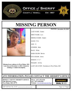 The individual is Levi Gunter, 41, a 5’11, brown-haired male, weighing at 165lbs with green eyes. According to the information from the Howell County Sheriff’s Office, Gunter was last seen on December 2nd at around 8 p.m. at his residence in the West Plains area.