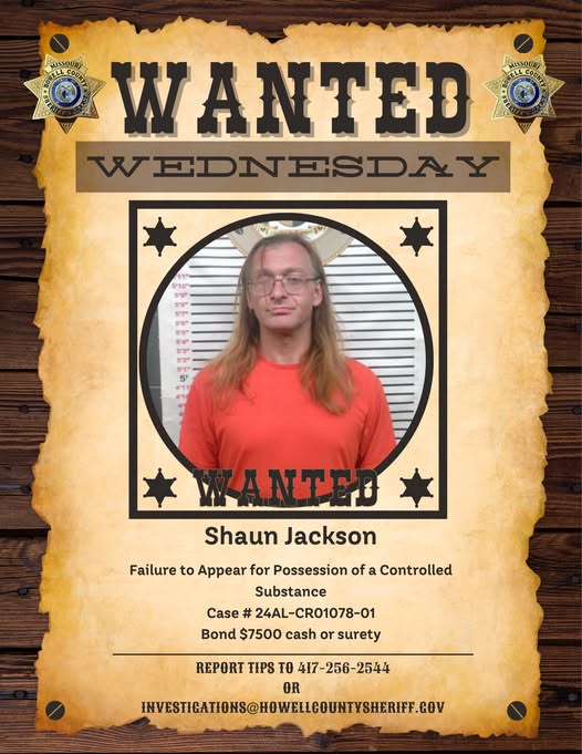 If you recognize Shaun Jackson or have information that could lead to his arrest, please contact the Howell County Sheriff’s Office at 417-256-2544.