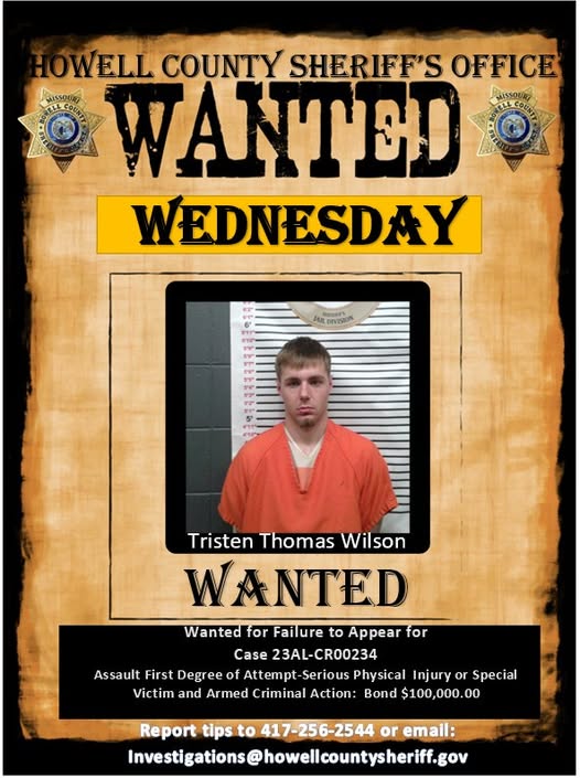 If you recognize fugitive Tristen Wilson and have information that could lead to his arrest, please contact the Howell County Sheriff’s Office at 417-256-2544.