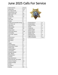 June 2025 Crime and Calls for Service Summary