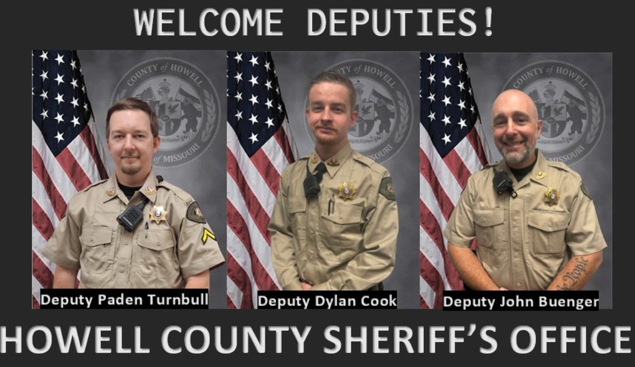 WEST PLAINS, MO- The Howell County Sherriff’s office announces the welcome of three new deputies; Deputy Paden Turnbull, Deputy Dylan Cook, and Deputy John Buenger.
