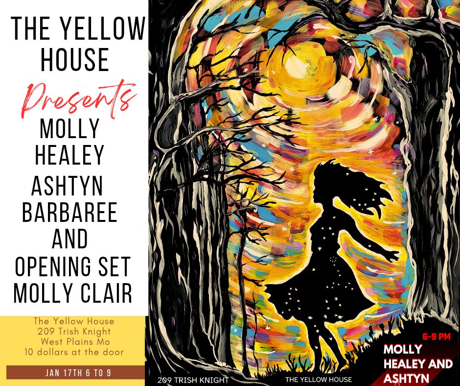This Saturday from 7 to 9pm, the Yellow House will be host to multiple musicians musicians: Molly Healy and Ashtyn Barbaree, with an opening set by Molly Clair.