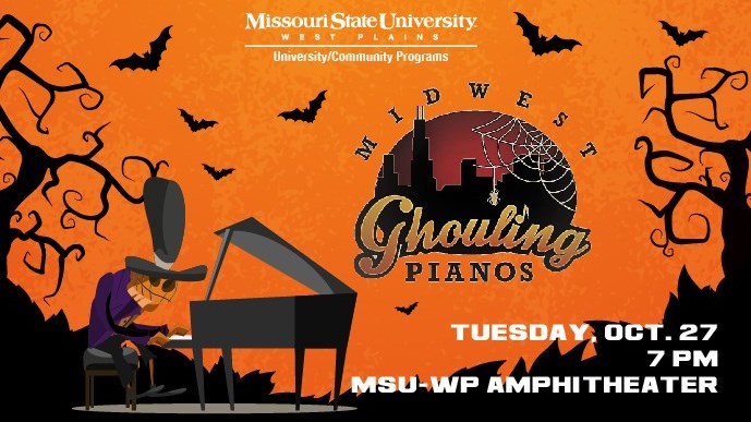 WEST PLAINS, Mo. – If you’re ready for a hauntingly good time, make plans to attend a performance by Midwest “Ghouling” Pianos at 7 p.m., tonight (Oct. 27) at the West Plains Civic Center Theatre. The concert was originally scheduled for the Missouri State University-West Plains (MSU-WP) amphitheater but was moved indoors, due to forcasted rain.