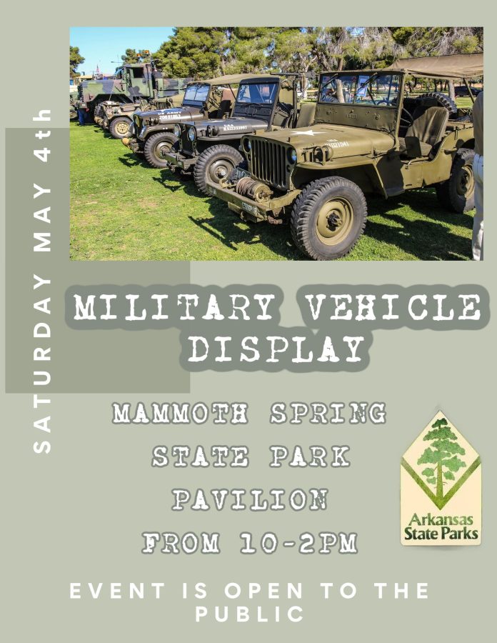 Mammoth Springs, AR. – If you are big into old military equipment or interesting history then Mammoth Springs has an event for you. On Saturday, May 4th, the Mammoth Spring State Park will be holding a Military Vehicle Display event at the state park from 10 to 2.
