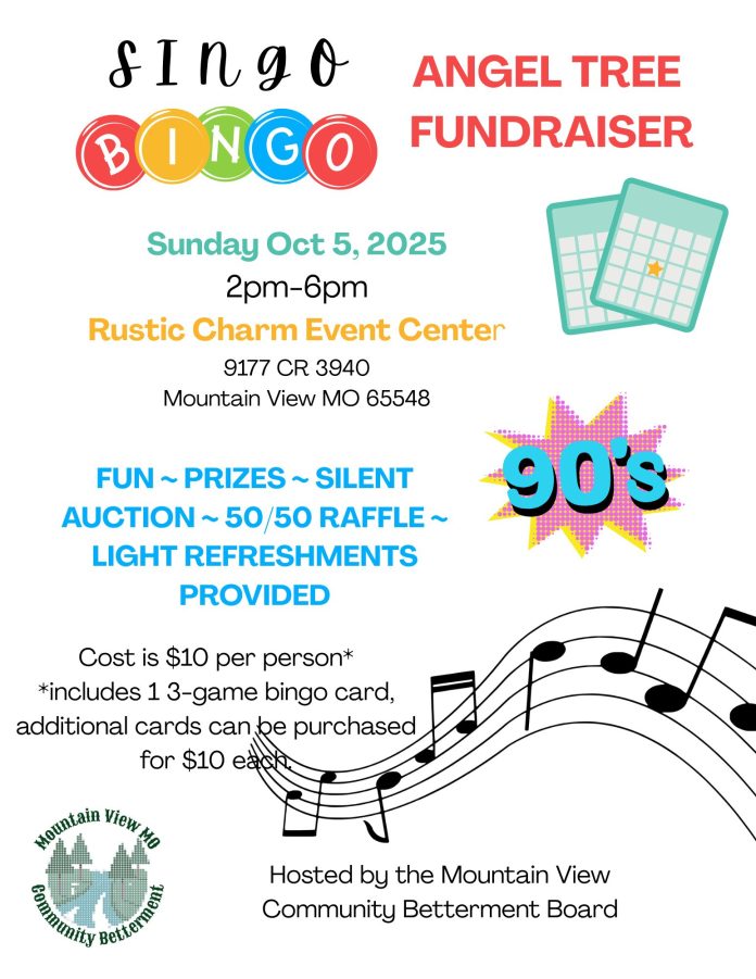 The Angel Tree helps with gifts for children in the area that might not have gifts otherwise. So please make plans to attend Singo Bingo in Mountain View.
