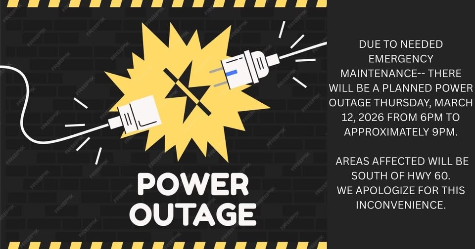 A heads‑up for residents south of Highway 60 in Mountain View. Utility crews will conduct emergency maintenance this Thursday, March 12th. To complete the work safely, power will be shut off from six to approximately nine p.m.
