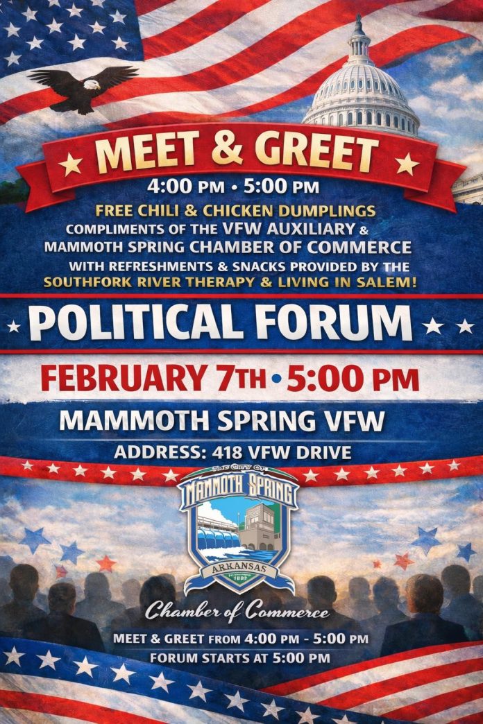 Mammoth Spring, AR. – This Saturday, those wanting to learn more about various candidates that will be available for vote in and around Fulton County, AR. will have a chance to do so in Mammoth Spring.