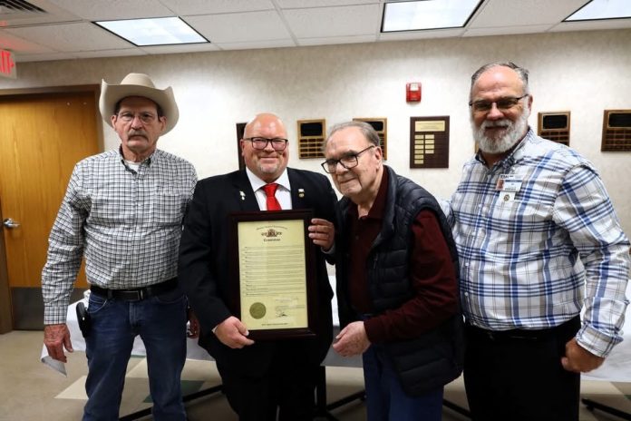 The resolution honors Bucher’s 20 years of volunteer service and more than 3,000 hours dedicated to the TCMH Auxiliary gift shop, as well as his lifelong commitment to serving others. During the ceremony, Bucher also received a plaque from TCMH, presented by Bill Bridges, CEO of Texas County Memorial Hospital, and his name was added to the Auxiliary’s honorary plaque in recognition of his contributions.