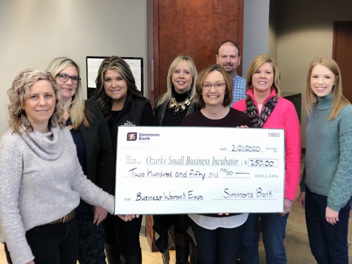 Simmons Bank recently made a $250 donation to sponsor The Amelia Network’s second annual Business Women’s Expo. The Amelia Network, a local networking group for women in business and leadership positions in the West Plains area and surrounding communities, will be hosting its expo on March 14, 2020, at the Ozarks Small Business Incubator (OzSBI) from 10 a.m. to 2 p.m.