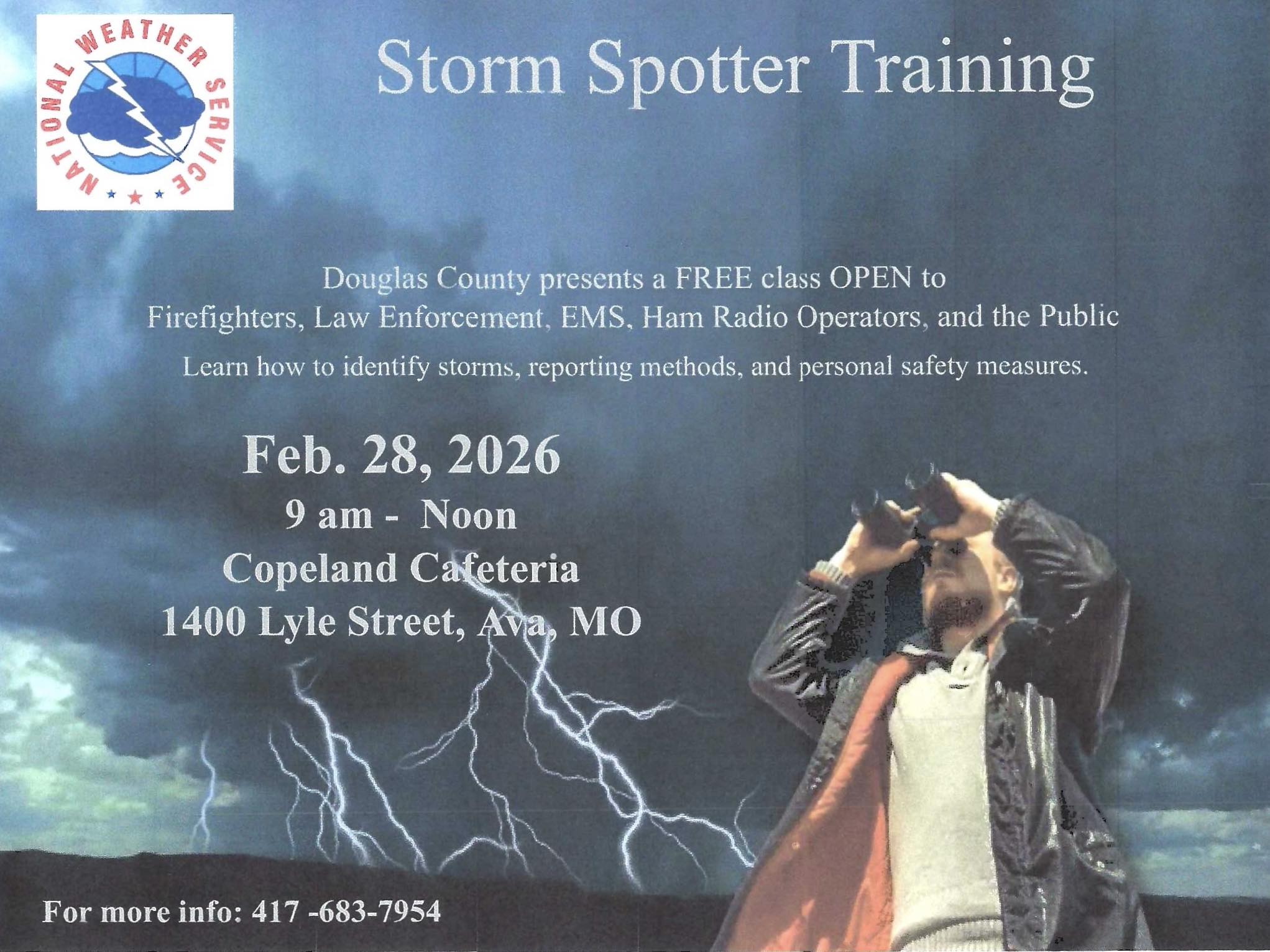 Ava, MO. – The Ava Rural Fire Department is organizing a Storm Spotter Training class next month for those interested in learning how to identify storms, or learning more about how the weather works in general.