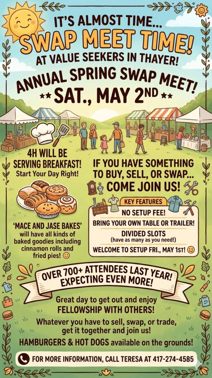 Thayer, MO. – In Thayer, a Swap Meet is being planned to take place in the beginning of May, and many vendors are preparing stock for the big day.