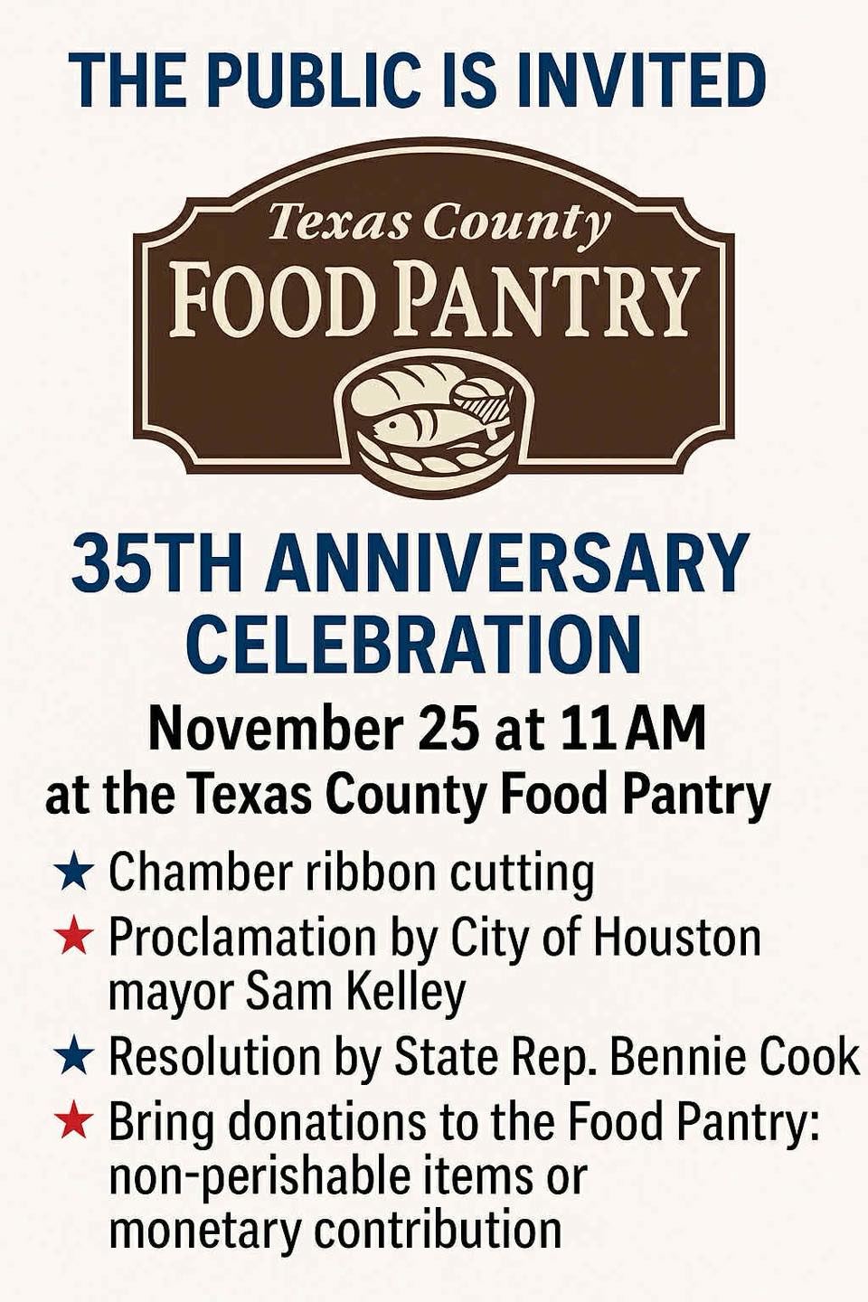 Houston, MO. – The Texas County Food Pantry has been in operation for 35 years, and city officials want to help celebrate this milestone.