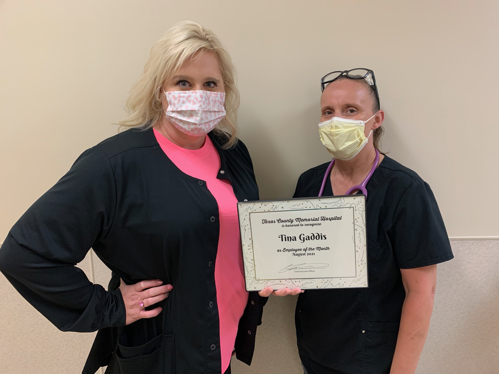 Houston, MO—Texas County Memorial Hospital has named Tina Gaddis of Mountain Grove the August employee of the month.