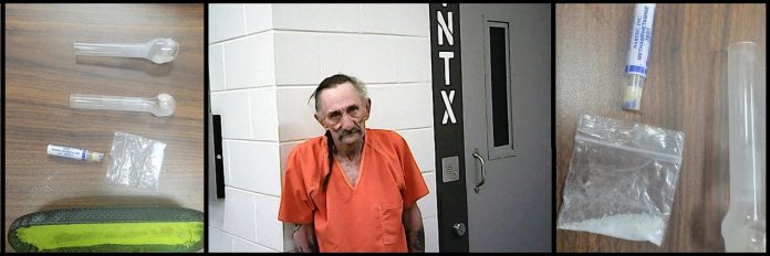Corporal Campbell located two suspected meth pipes in the center of the vehicle. An additional search into the drivers wallet revealed a plastic bag with a crystal-like substance suspected to be methamphetamine.